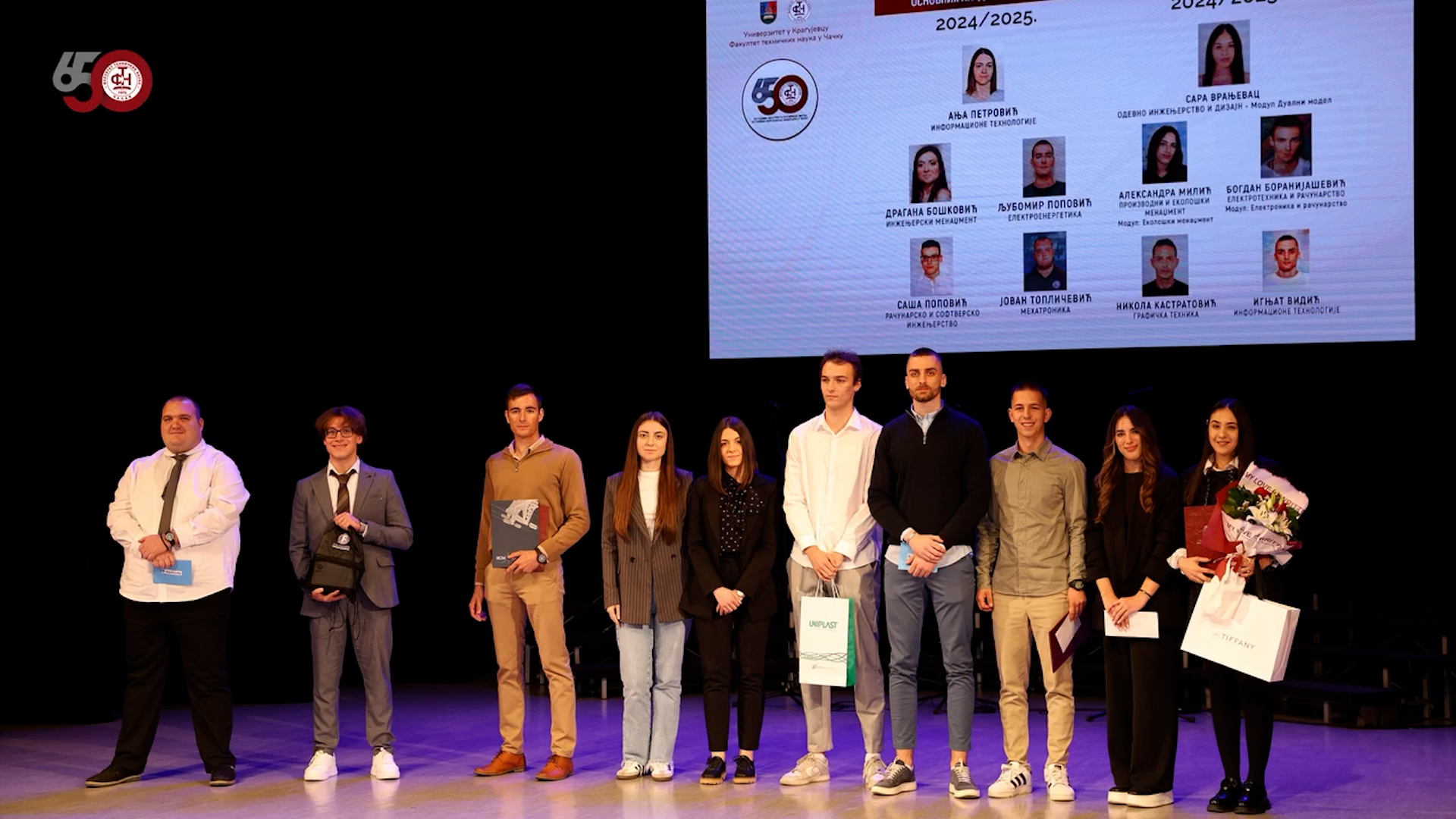 Najuspešniji student na studijskom programu Mehatronika je Jovan Topličević, kome je nagradu uručila kompanija Sloboda Čačak. Na studijskom programu Inženjerski menadžment, najuspešnija studentkinja je Dragana Bošković, dobitnica nagrade kompanije Unipromet. Saša Popović je najuspešniji student na studijskom programu Računarsko i softversko inženjerstvo, a nagradu mu je uručila kompanija Fieldscope International.